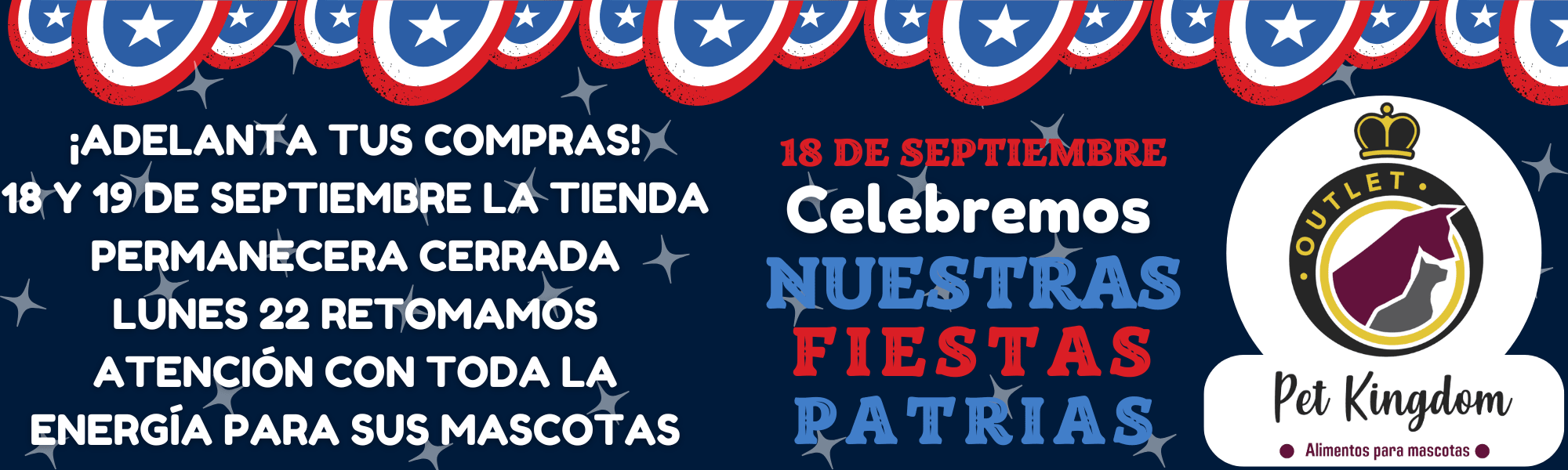Les deseamos unas felices Fiestas Patrias junto a sus familias y, por supuesto, junto a sus regalones peludos.